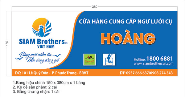 Làm bảng hiệu quảng cáo cửa hàng ngư lưới cụ HOÀNG – Siam Brother Việt Nam