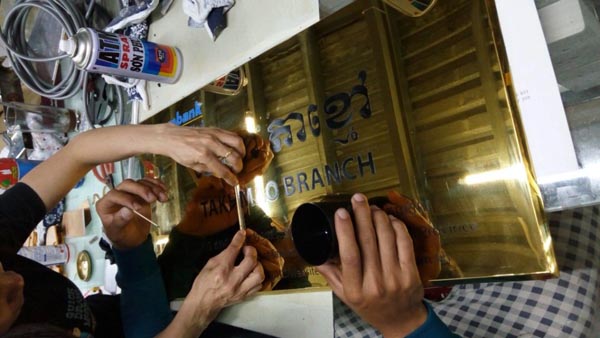 Sản phẩm bảng hiệu inox Ngân Hàng Sacombank quá trình thi công và hoàn thiện: